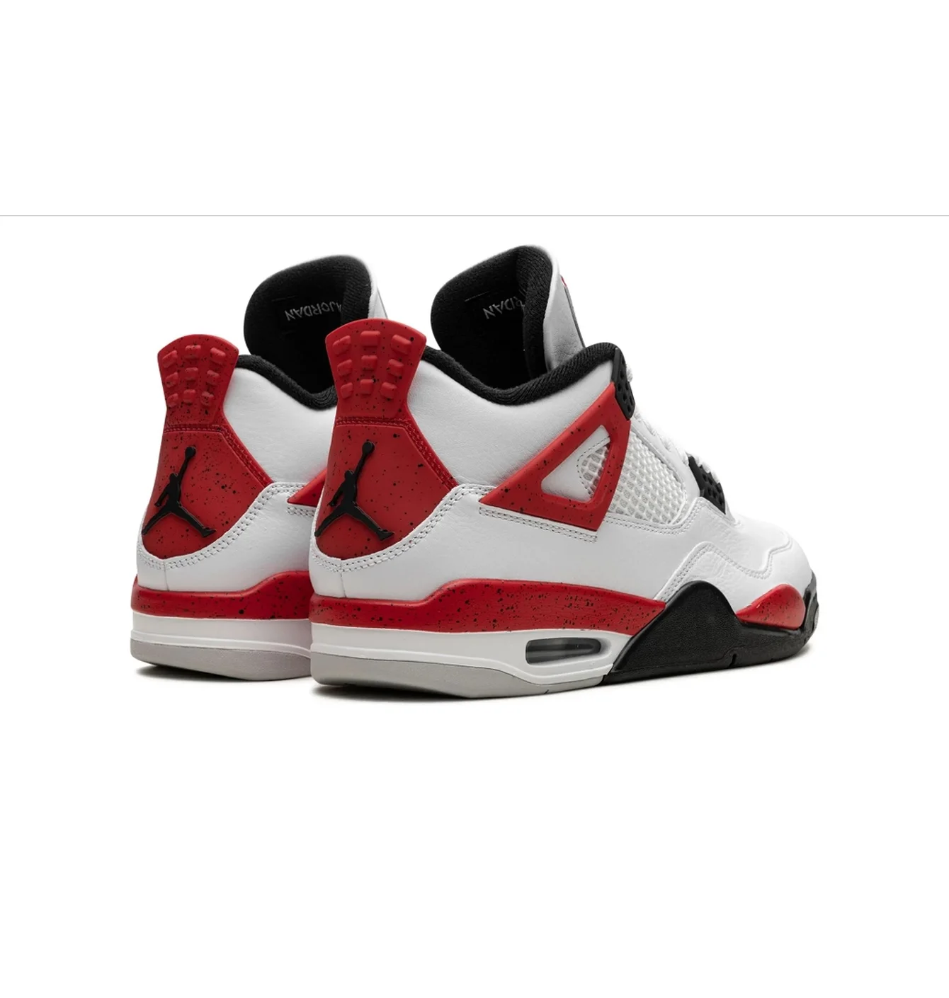 Натхнення: від класичних AJ4 White Cement 1989 року, але з заміною сірих елементів на більш яскравий Red Cement — насичений червоний зі speckle-ефектом на пляшках шнурівки, підошві та п’яті.
