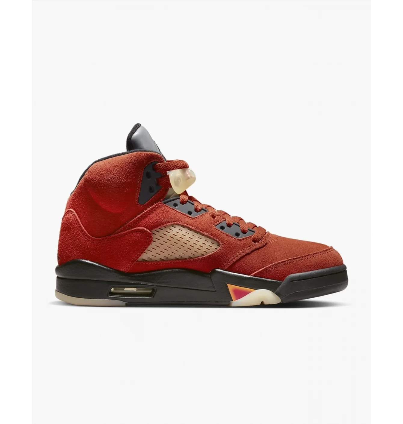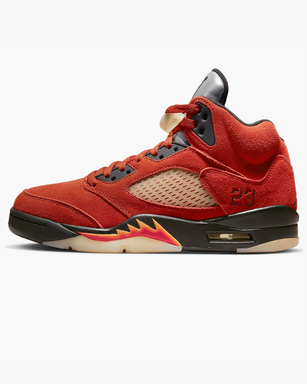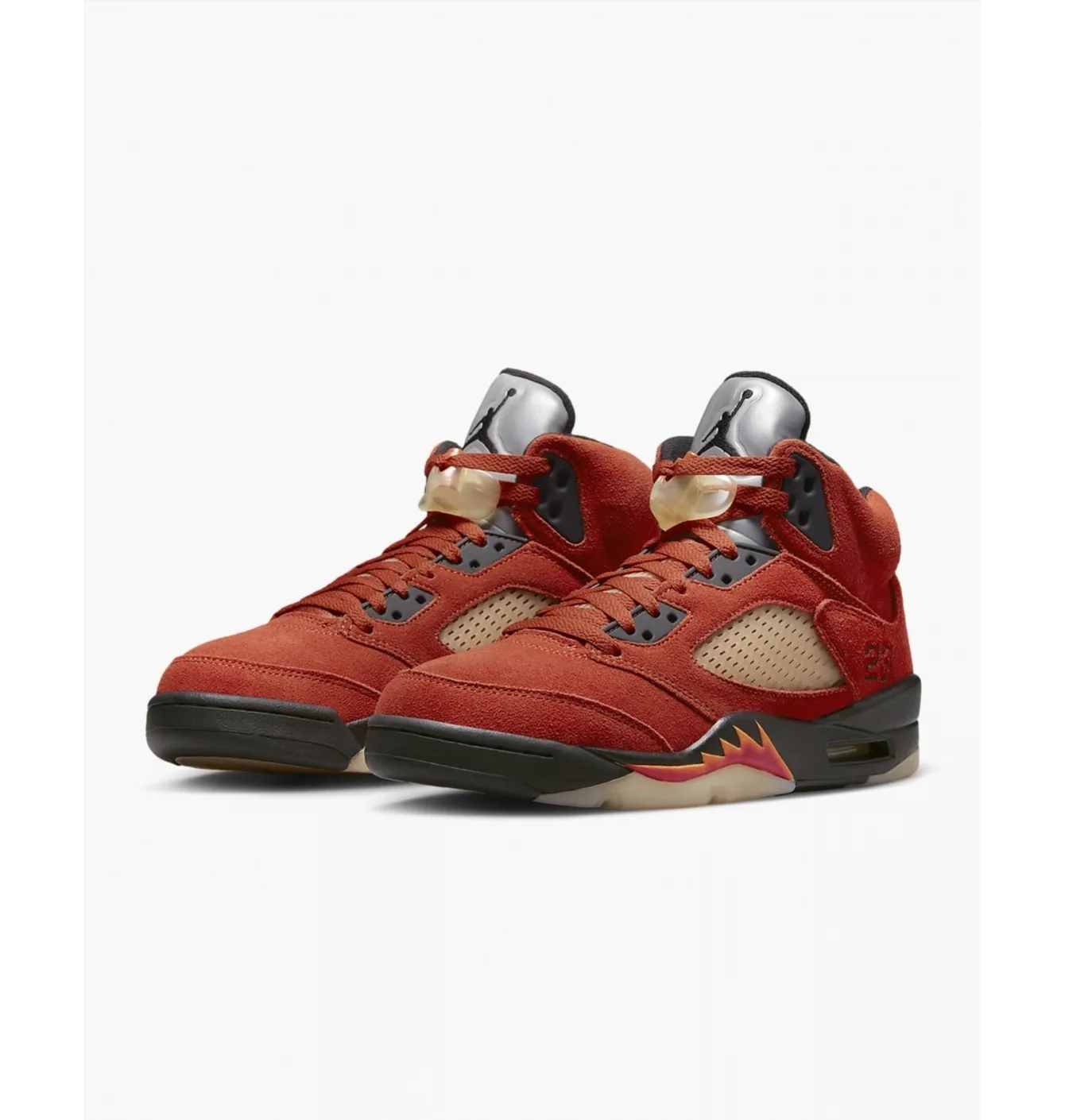 Ця модель — частина пакету “Dunk On Mars”, натхненого персонажем Mars Blackmon з культових рекламових кампаній Air Jordan. Яскравий червоний верх символізує поверхню Марса, а легендарні елементи Air Jordan 5 (рефлективний язичок, ембру вишивка «23», «акульі зуби» на підошві) додають спортивного характеру.