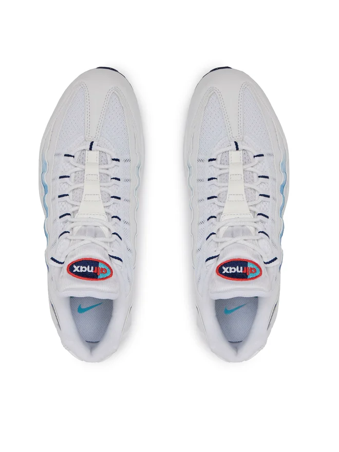 Nike Air Max 95 ‘3 Lions’ — це спеціальна версія моделі, випущена до FIFA World Cup 2022 у 2022 році як данина поваги до домашньої форми національної футбольної збірної Англії “Three Lions”. Колірна гама — білий, червоний і синій — відображає традиційні кольори футбольної форми та символіку команди, а на боковині є мітка “3 Lions” у вигляді тега.