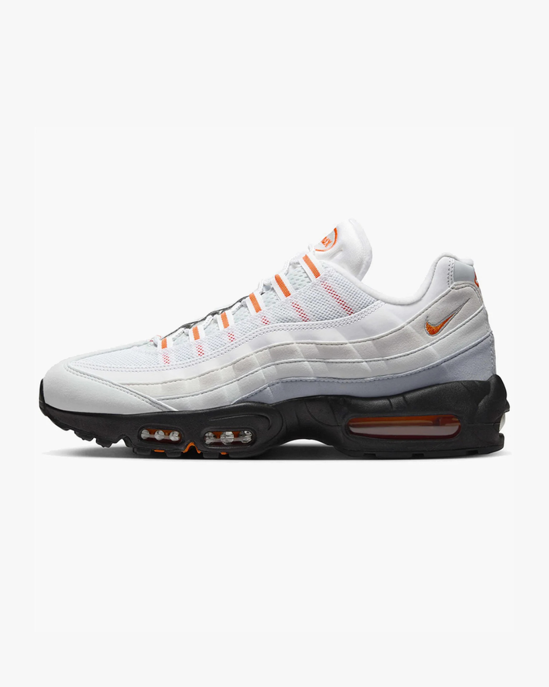 Модель зберігає класичну багатошарову конструкцію Air Max 95, де верхні шари нагадують анатомію стопи, а повнорозмірні балони Air у п’яті та передній частині забезпечують максимальну амортизацію і м’який перекат при ходьбі.