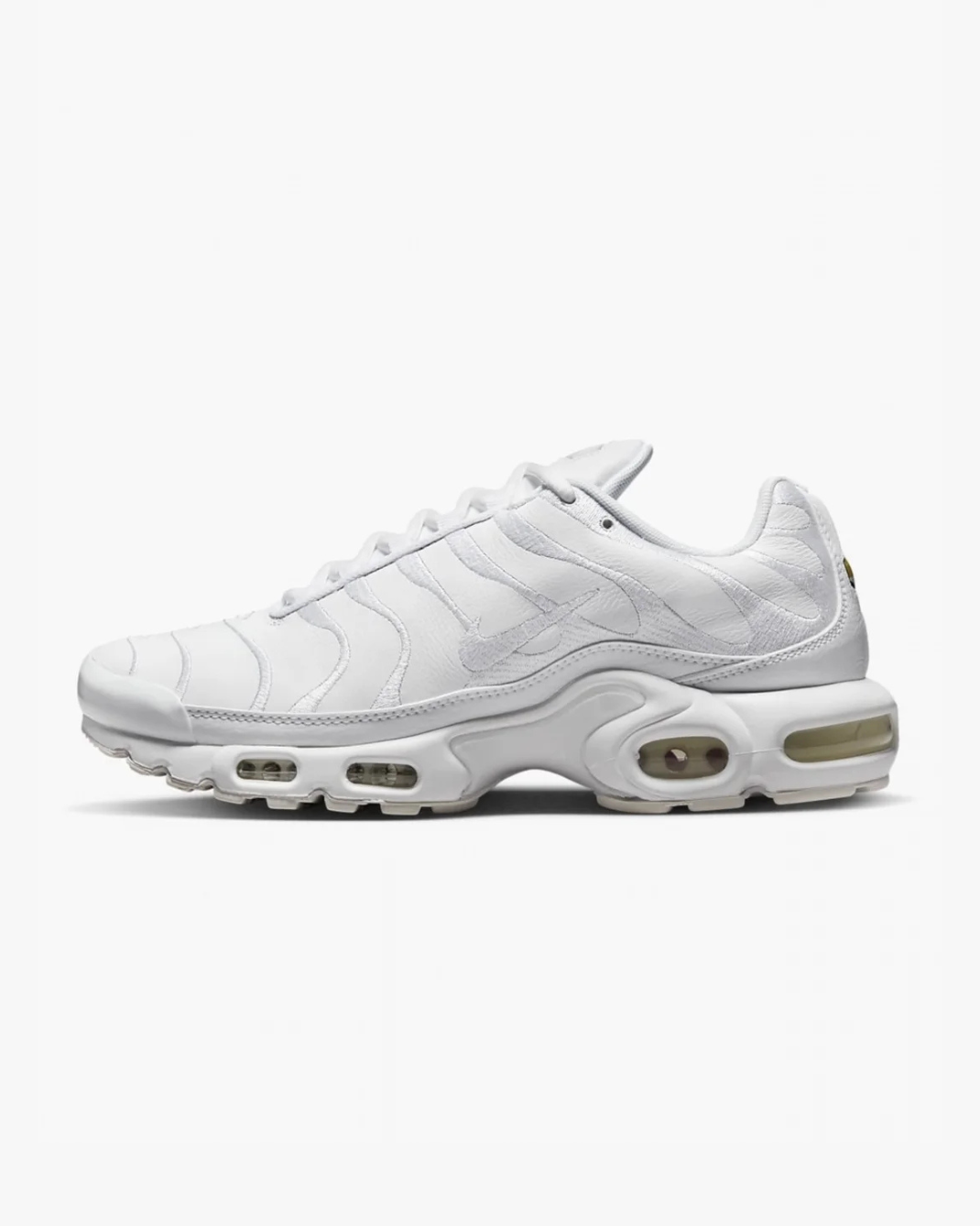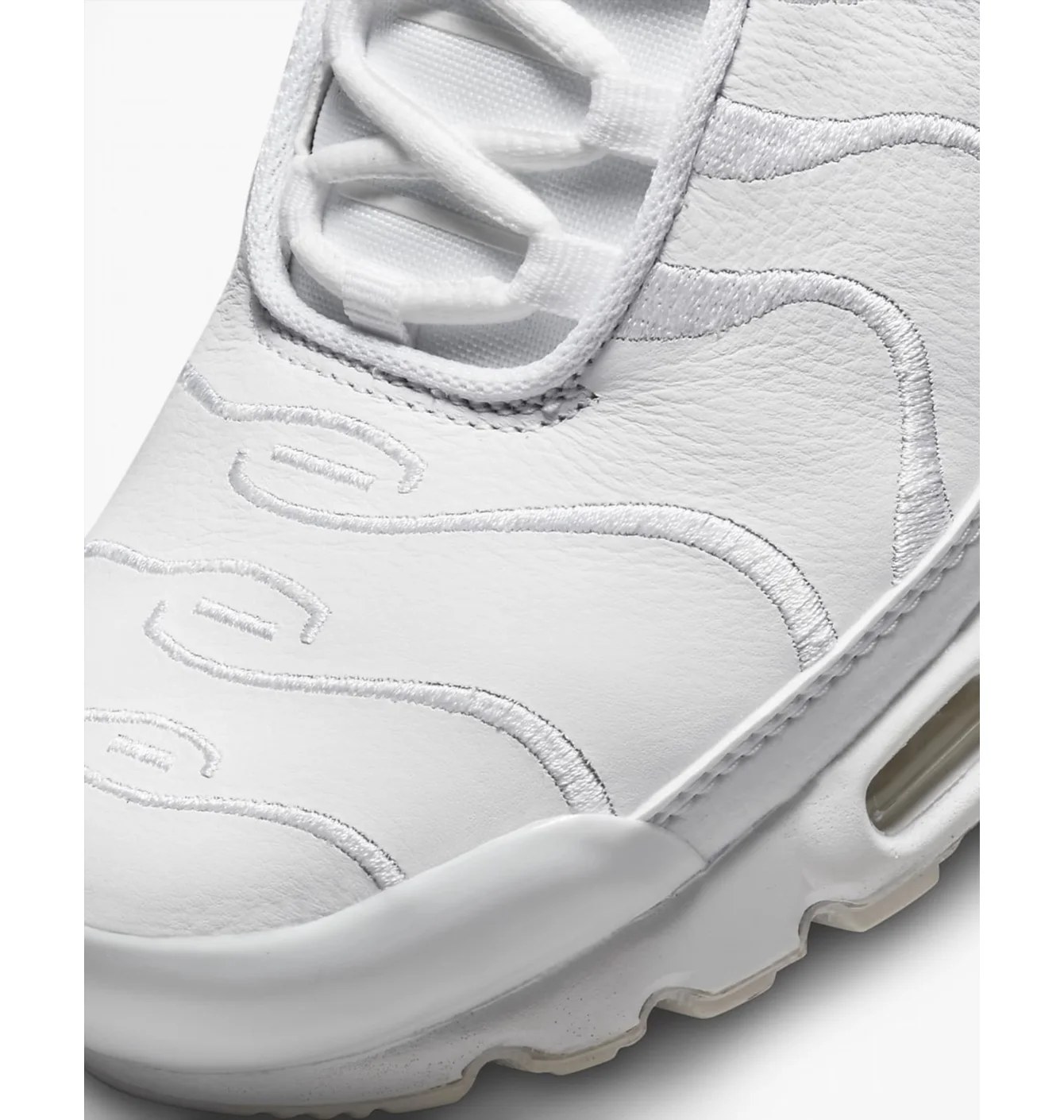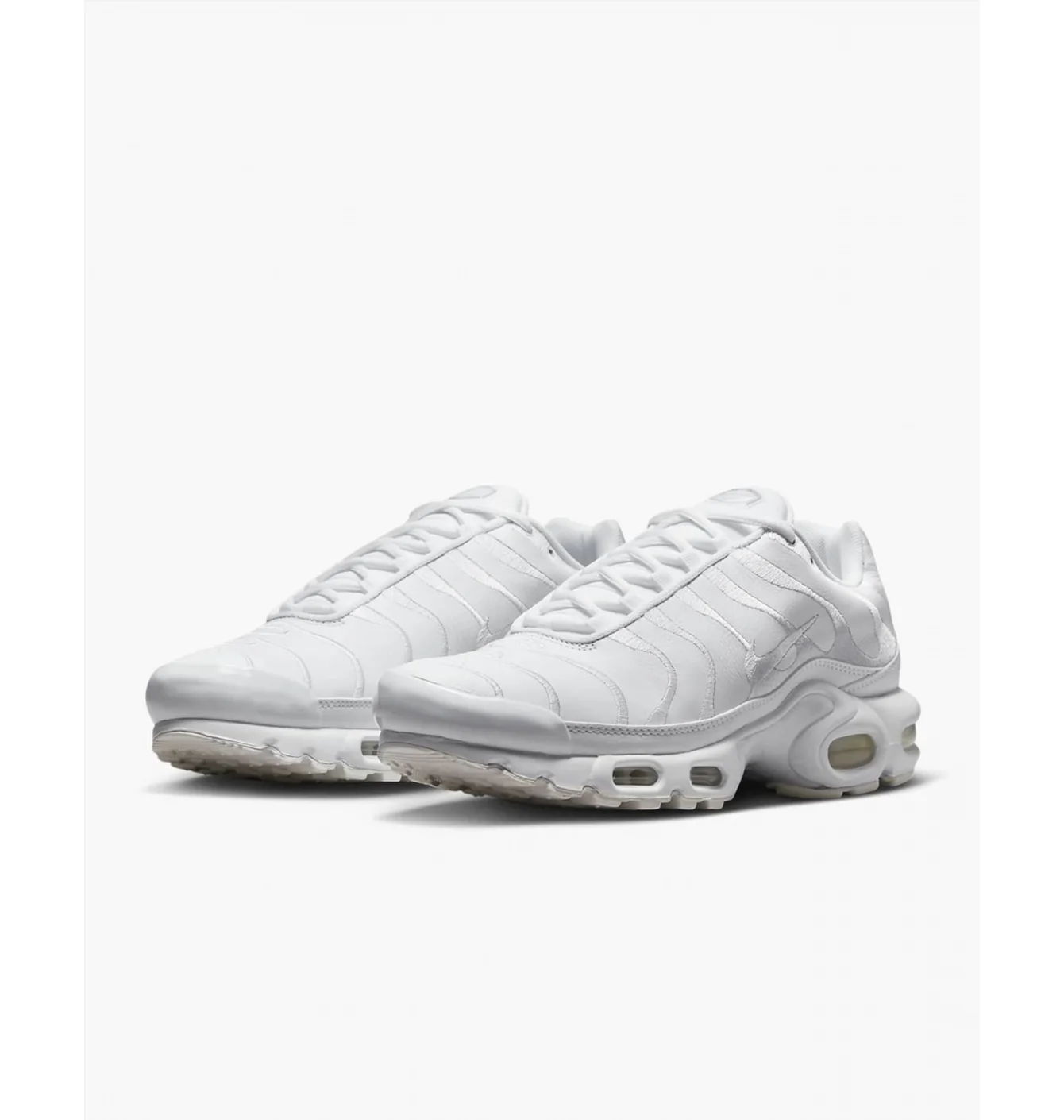 Модель вирізняється хвилястим каркасом верху, натхненним рухом океанських хвиль і пальмами, що стало візитівкою Air Max Plus. Колір White (AJ2029-100) надає кросівкам чистого, універсального вигляду та легко поєднується з будь-яким одягом.