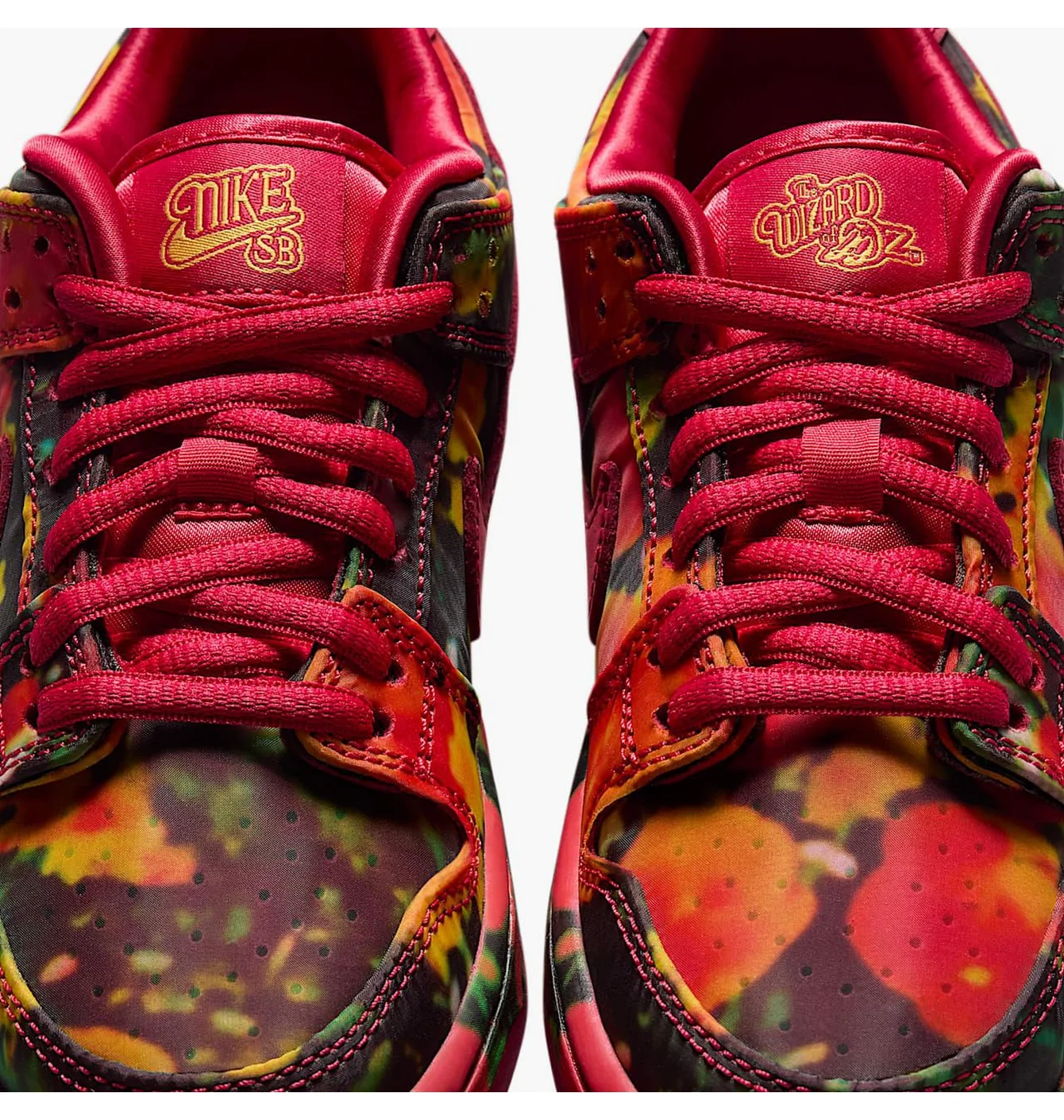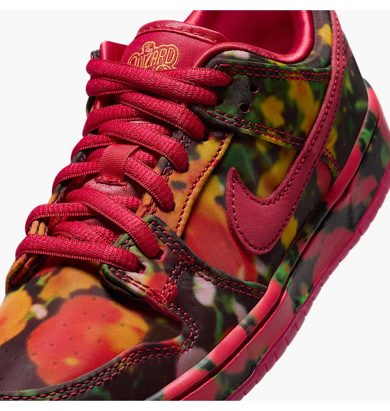 Це унікальна тематична модель Nike SB Dunk Low, яка не просто використовує яскраві кольори, а й розповідає історію через дизайн — від флорального верхнього принту до легендарної цитати та декоративних деталей, пов’язаних із фільмом The Wizard of Oz.