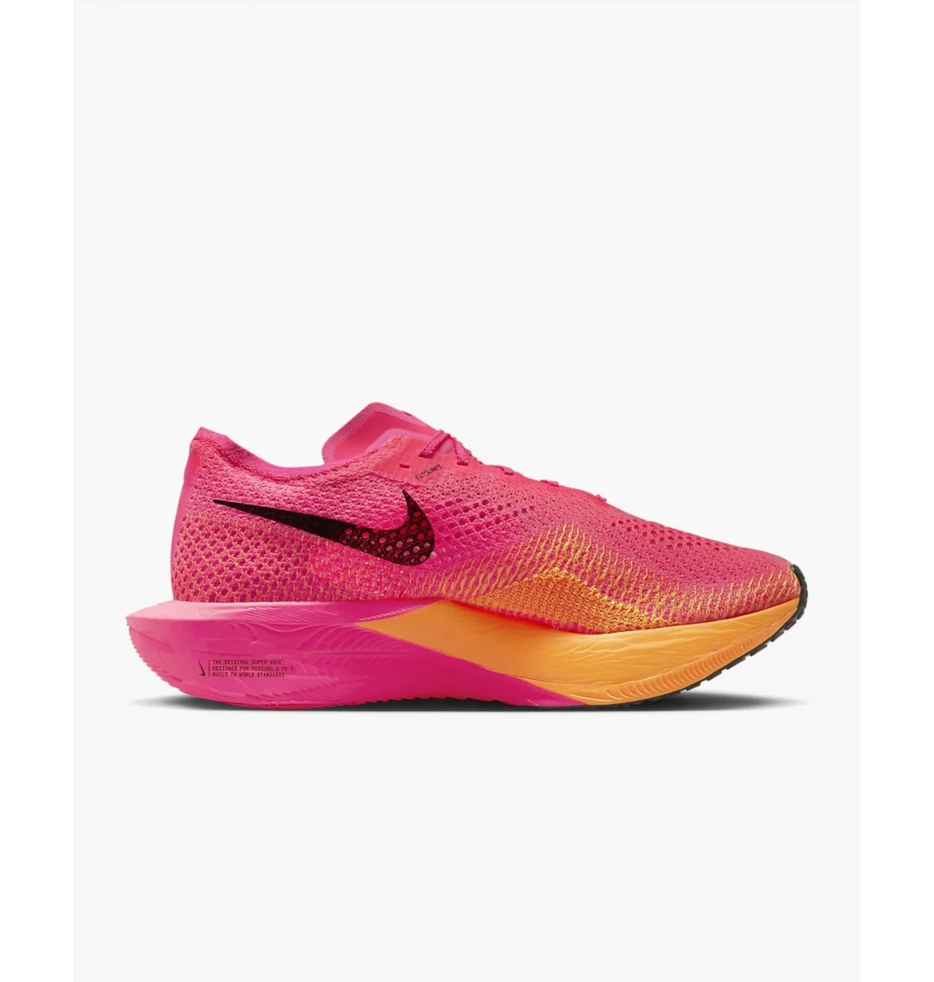 Nike ZoomX Vaporfly Next% 3 Hyper Pink Laser — це елітна модель для швидкого бігу та змагань, яка поєднує найпродуктивніші технології Nike (ZoomX + карбонова пластина + Flyknit) для максимального ефекту на трасі
